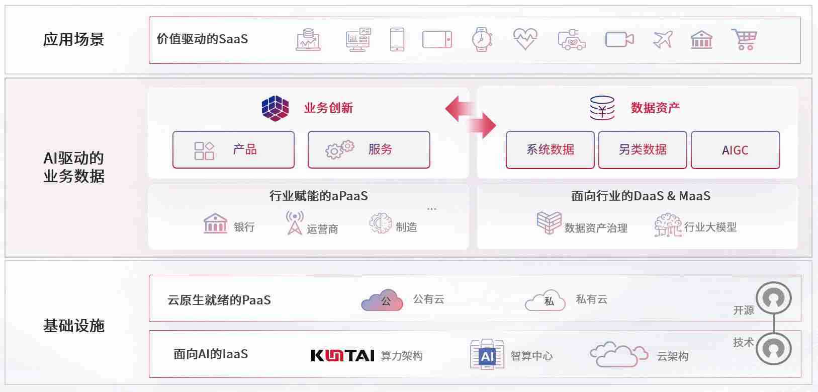 数字时代,,围绕企业数字化转型的关键要素,,,z6com尊龙数码开创性的提出数云融合战略和技术体系框架,,着力在云原生、、、数字原生、、AI原生和信创产业上架构产品和服务能力,,,为处在不同数字化转型阶段的快消零售、、、汽车、、金融、、、、医疗、、政企、、教育、、运营商等行业客户提供泛在的敏捷IT能力和融合的数据驱动能力,,,构建跨界融合创新的数字业务场景和新业务模式,,,助力企业级客户建立面向未来的核心能力和竞争优势,,,全面推动社会的数字化、、、智能化转型升级。。。。
