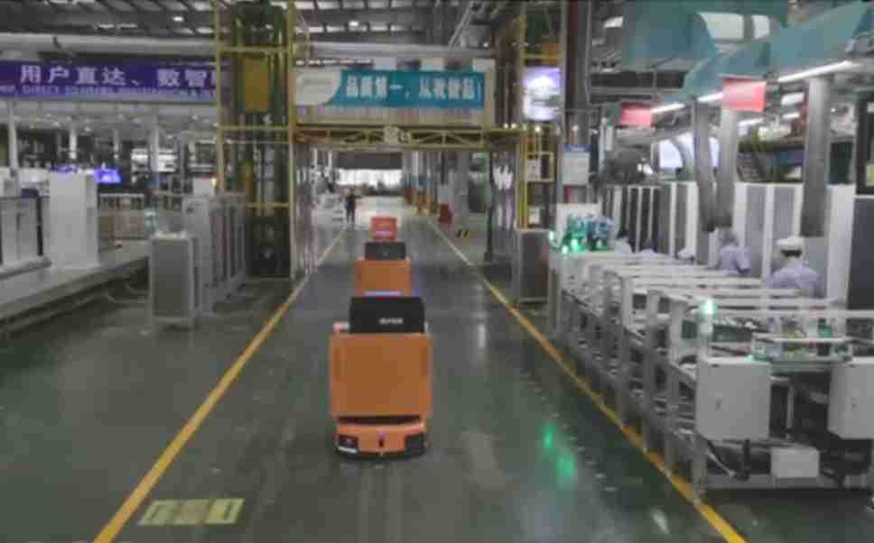 为车载冰箱物流配送打造的智能解决方案,,,包含产中物流通过潜伏举升AMR搬运至线边,,,产后成品物流智能仓储,,,流程包含产中物流智能齐套入库,,,,线边安灯叫料AMR智能配送至线边,,,成品入库、、、出库,,,通过无人堆高车机器人,,,,智能仓储管理替代人工作业管理,,实现更高存储、、更高效率、、、、更具柔性化的解决方案。。。